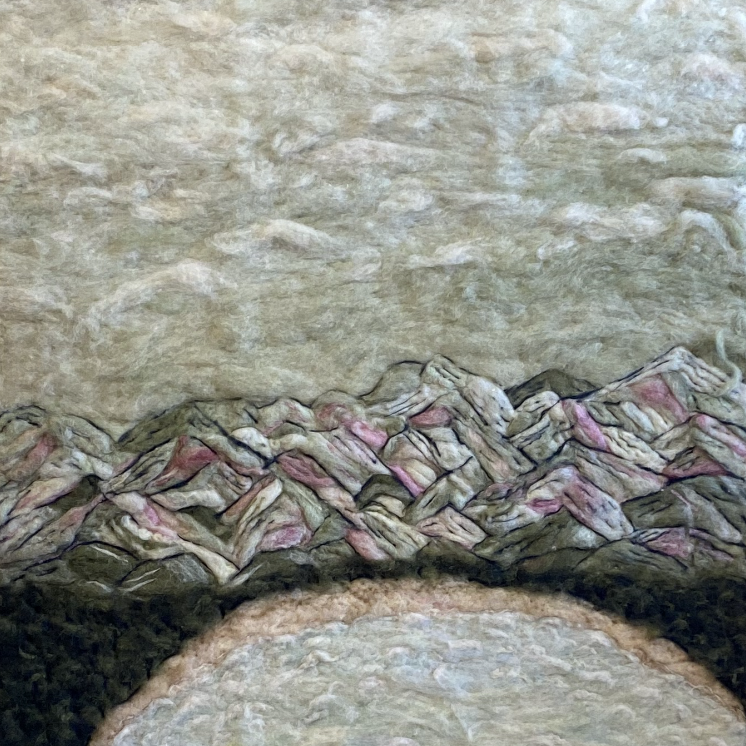 Feeling Flemish, felting Flemish Nature and nurture Northen Beach Dreaming of the sea Vlaamse weide RED and PINK Green mountains Blue sky